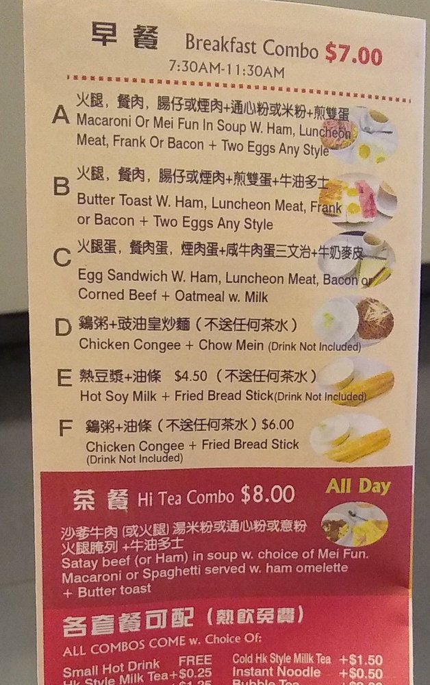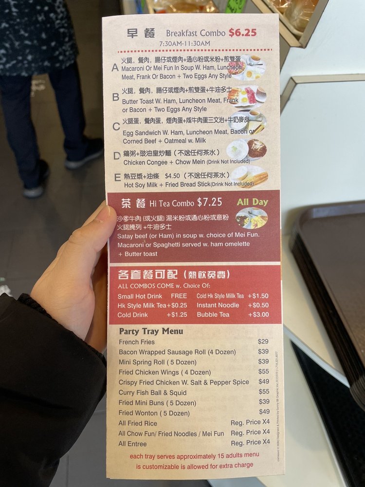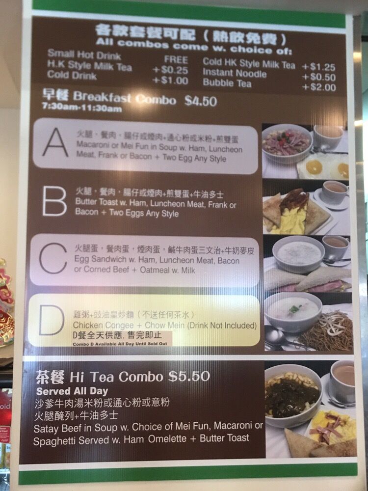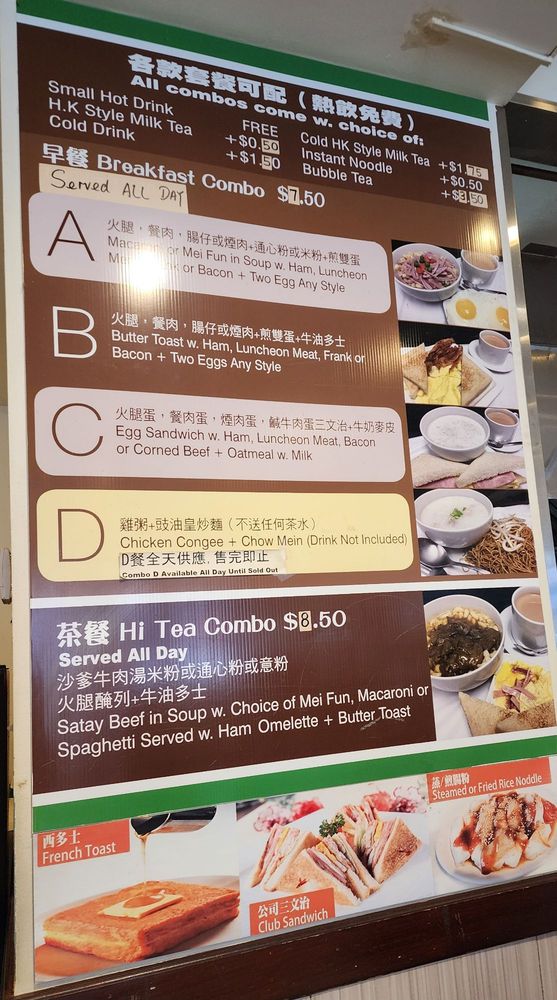 HI Tea Hong Kong Style Cafe, located in Oakland Gardens, NY, offers a delightful fusion of traditional Hong Kong breakfast and brunch dishes in a cozy setting. With a variety of breakfast combos, sandwiches, and toasts, this cafe is a favorite among locals and visitors alike.
